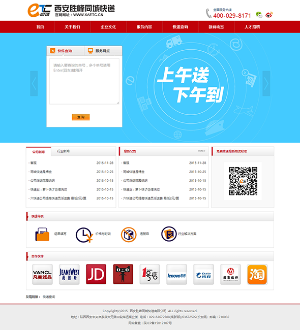 西安勝峰同城快遞有限公司于2015年6月15日在西安注冊成立。主要從事專業(yè)同城快遞、配送業(yè)務(wù),為廣大客戶提供快捷、放心、優(yōu)質(zhì)的快遞服務(wù)。