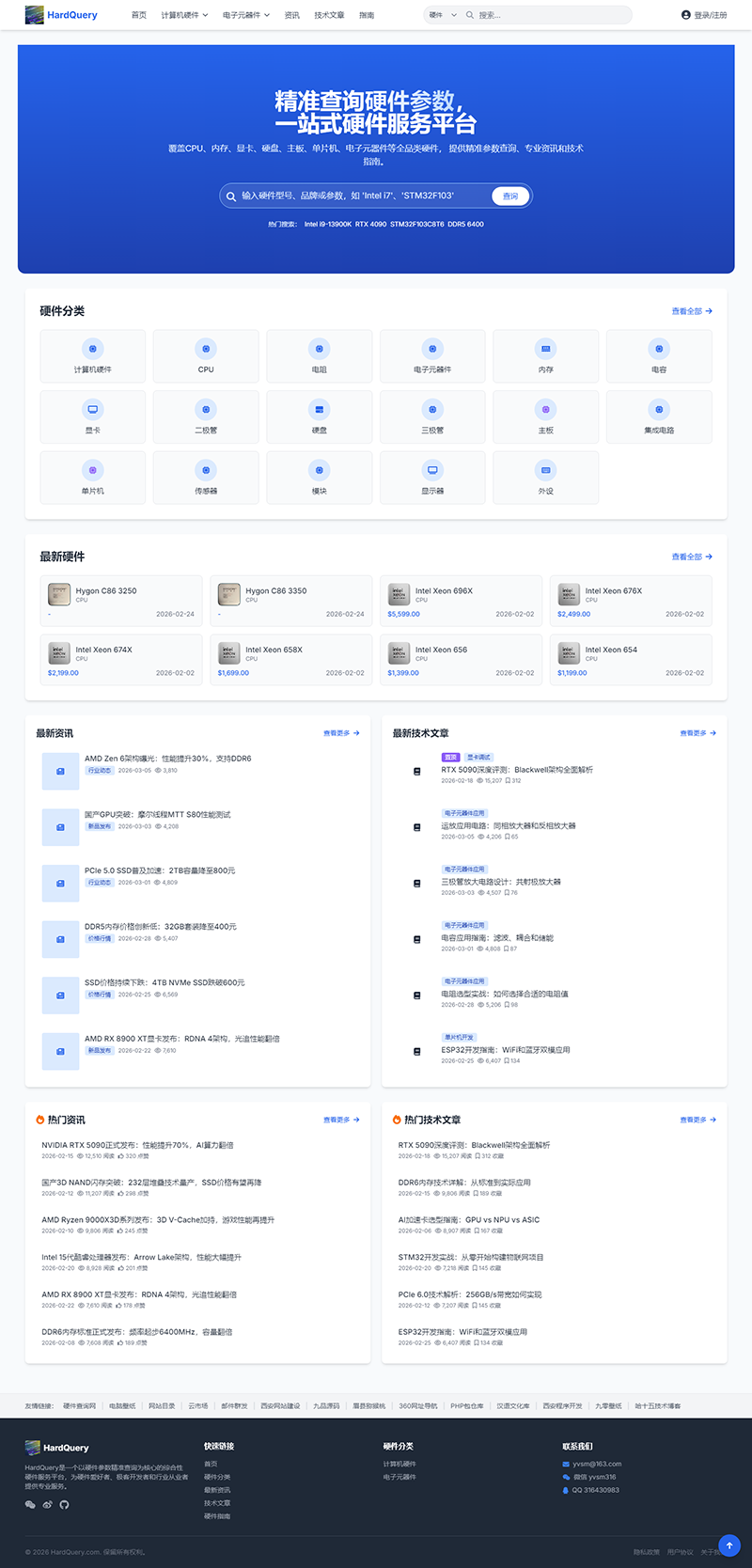 HardQuery是一個以硬件參數(shù)精準(zhǔn)查詢?yōu)楹诵牡木C合性硬件服務(wù)平臺,為硬件愛好者、極客開發(fā)者和行業(yè)從業(yè)者提供專業(yè)服務(wù)。覆蓋CPU、內(nèi)存、顯卡、硬盤、主板、單片機、電子元器件等全品類硬件, 提供精準(zhǔn)參數(shù)查詢、專業(yè)資訊和技術(shù)指南。