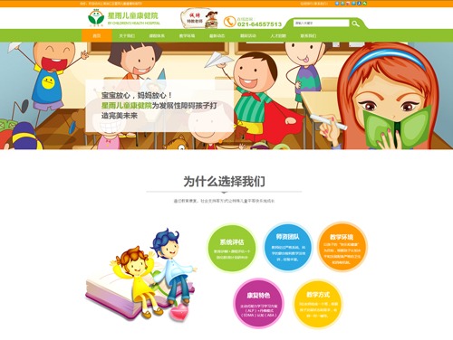 上海市徐匯區(qū)星雨兒童康健院該網(wǎng)站屬于學(xué)校、教育、培訓(xùn)行業(yè)橙色,綠色系風(fēng)格
