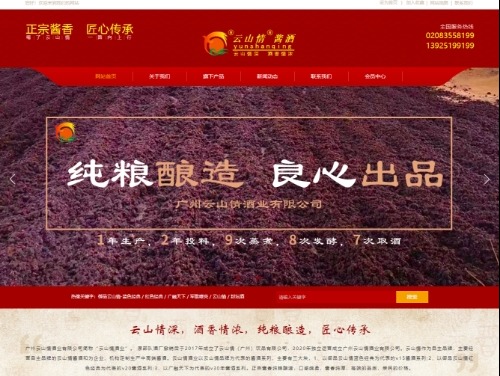 廣州云山情酒業(yè)有限公司 該網站屬于食品、飲料、茶葉、酒類行業(yè)紅色,白色系風格
