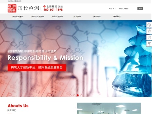 國檢(青島)檢測技術(shù)有限公司該網(wǎng)站屬于服務、咨詢、信息行業(yè)紅色,白色系風格