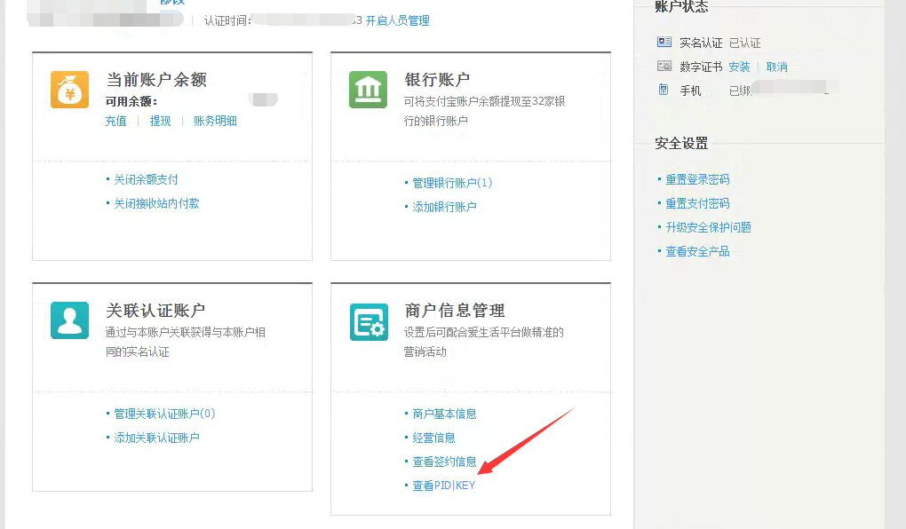 進入帳戶管理 進入查看pid 和key