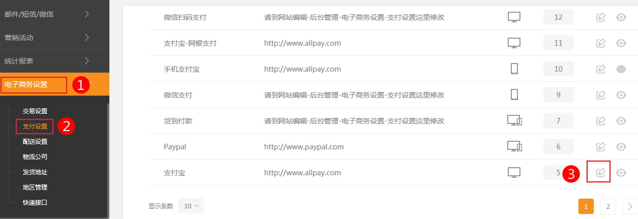 在網(wǎng)站后臺啟用支付寶接口,或修改已經(jīng)添加好的支付寶接口