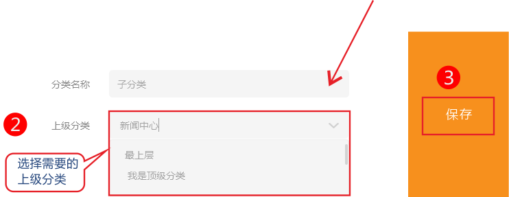 2.錄入頂級分類名稱,如果需要在頂級分類下添加子分類,直接點擊添加子分類即可。