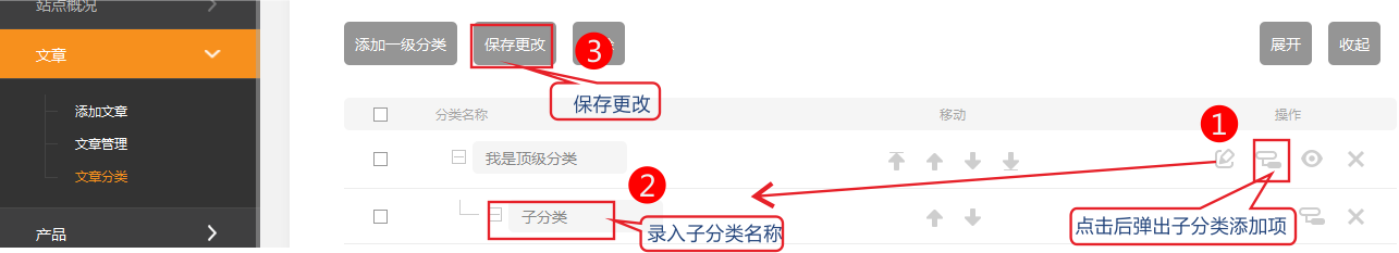 1.依次點擊 后臺管理-文章-文章分類