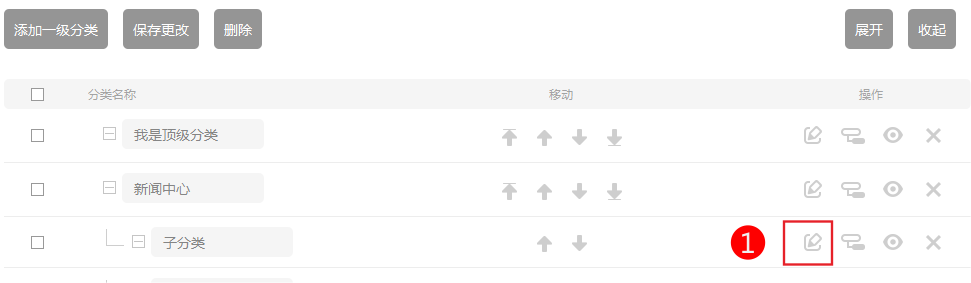 “編輯”:可修改分類名稱,樣式及其上級分類;