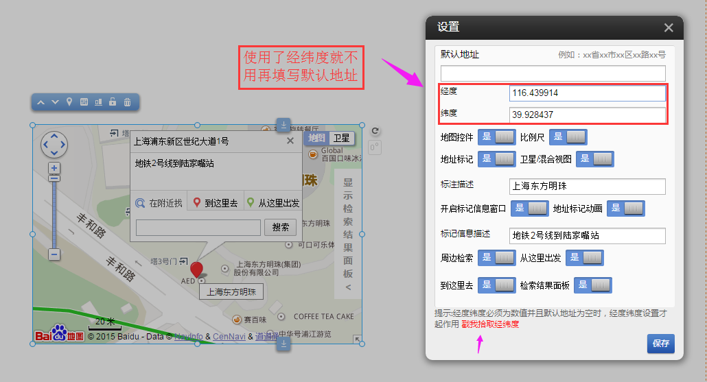 另外還可以使用經緯度來定位,填寫了經緯度就不用再填寫默認地址。