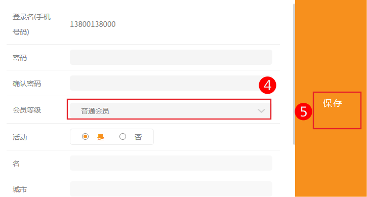 2)如果有會(huì)員已經(jīng)注冊(cè),可以手動(dòng)設(shè)置會(huì)員等級(jí),點(diǎn)擊“編輯”下面的按鍵,彈出下面的選項(xiàng),選擇會(huì)員等級(jí),然后按保存, 如下圖: