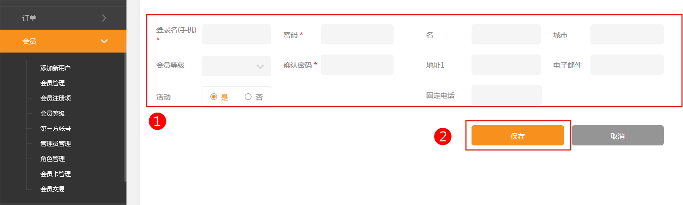 1)添加用戶:此操作為管理員操作,如管理員為自己添加一個(gè)測(cè)試賬戶,或者幫客戶添加賬戶,然后通知客戶。其中,帶“*”號(hào)為必填項(xiàng),不填則無(wú)法注冊(cè)成功,您可以自行在2)項(xiàng)“會(huì)員注冊(cè)項(xiàng)”中修改哪些項(xiàng)為必填項(xiàng);會(huì)員等級(jí)是您事先已經(jīng)設(shè)置好的,可以在第3)項(xiàng)中進(jìn)行增刪或者修改。其它項(xiàng)為選填項(xiàng),完成后點(diǎn)擊“保存”,會(huì)員test3@qq.com就生成了。