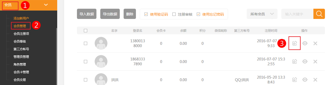3. 會(huì)員管理