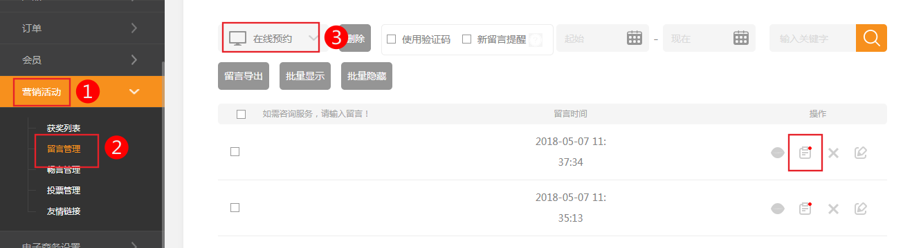 5、 點(diǎn)留言管理,可以查看和管理訪客的留言