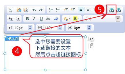 2.文本模塊中的文字:選中相應(yīng)的文字-》點(diǎn)擊超鏈接按鈕