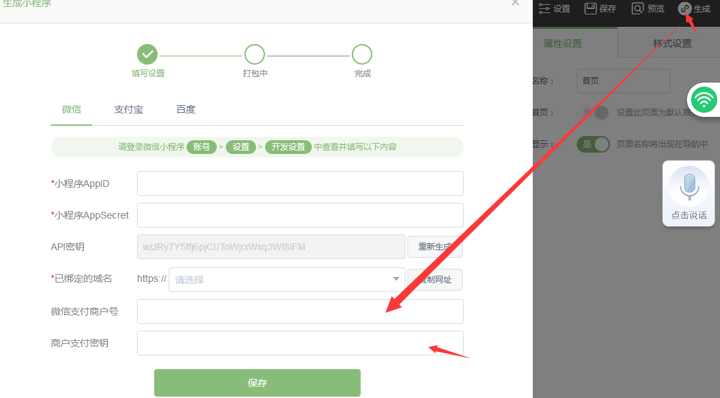 獲取后到網(wǎng)站中點(diǎn)擊生成填寫微信支付商戶號(hào)和 商戶支付密鑰