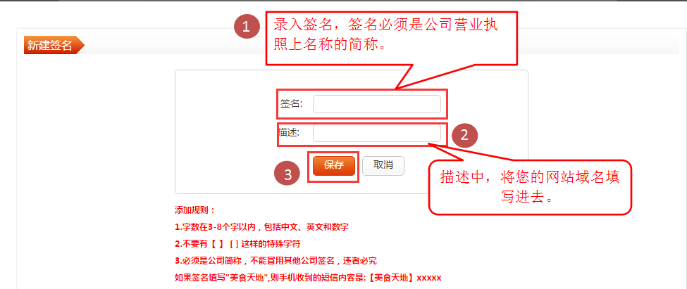 1.網(wǎng)站后臺設(shè)置完成之后需要在短信管理平臺進(jìn)行短信格式以及簽名的添加審核