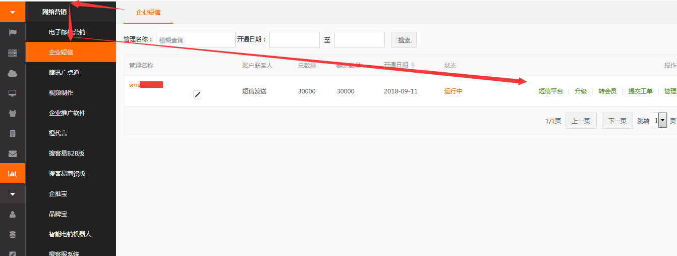 2.然后點(diǎn)擊短信平臺