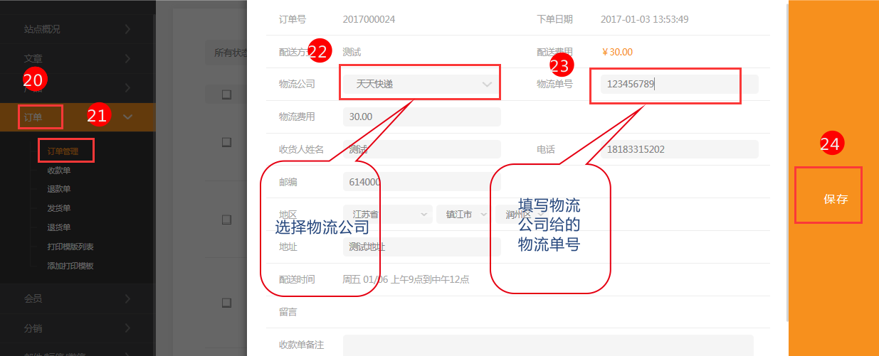 8.選擇好物流公司,填寫物流公司給的準確的物流單號。