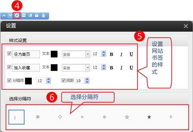 2、點(diǎn)擊設(shè)置,配置網(wǎng)站書簽的樣式。