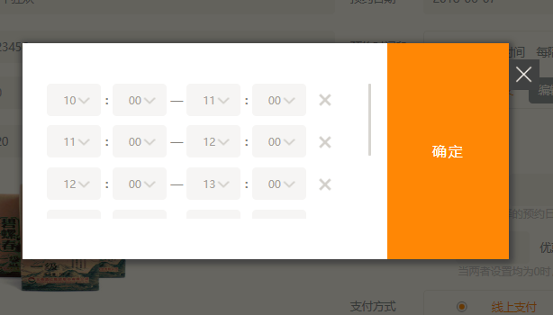 2.需要注意的地方有:圖一:“用戶信息”中默認(rèn)的為姓名與電話,點(diǎn)擊自定義也可以選擇其他需要填寫的內(nèi)容;圖二:“預(yù)約時(shí)間段”我們有兩種形式,一種是按照營(yíng)業(yè)時(shí)間間隔來(lái)顯示,一種是可以自定義時(shí)間段進(jìn)行編輯,點(diǎn)擊“自定義”會(huì)出現(xiàn)彈框,里面可以選擇時(shí)間;圖三:如果需要服務(wù)人員,點(diǎn)擊“服務(wù)人員”里面可以添加服務(wù)人員的信息,以及庫(kù)存量(庫(kù)存量是這個(gè)時(shí)間段下該服務(wù)人員可以被預(yù)約的次數(shù)),彈框的上方也可以為所有服務(wù)人員設(shè)置統(tǒng)一庫(kù)存量,如圖所示:
