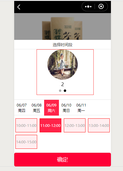 4.1預(yù)約方式-單天預(yù)約-單天總限制,下圖指每個(gè)用戶每天最少可以預(yù)約1個(gè),最多預(yù)約2個(gè),預(yù)約次數(shù)不累計(jì),樣式如下圖: