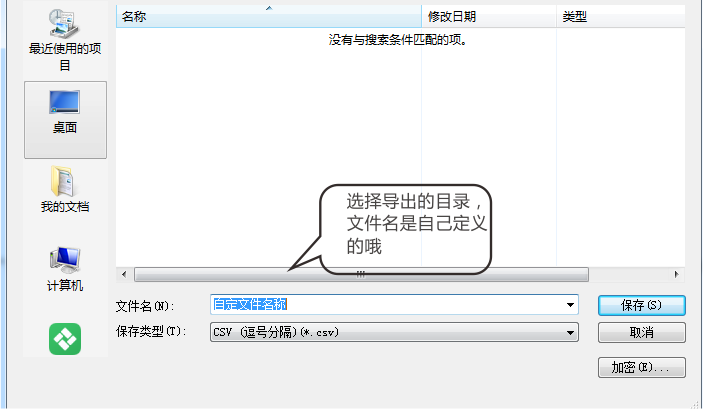 2、選擇“導(dǎo)出到CSV文件”后,就會彈出保存文件對話框,輸入你想要保存的名字,點(diǎn)保存。(如圖)