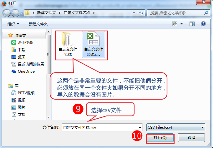 3、保存成功后會生成一個.csv文件和一個同名的文件夾。(比如文件名為“自定義文件名字.CSV”,那么會在相同的目錄下會有一個同名的“自定義文件名字”文件夾,此文件夾是保存CSV文件中的圖片信息等)。(如圖)