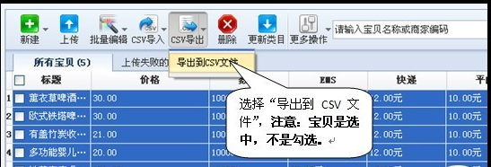 這里首先要說明的是淘寶助理5暫時(shí)只支持CSV文件的導(dǎo)入與導(dǎo)出,助理5中導(dǎo)出的數(shù)據(jù)包不一定兼容導(dǎo)入助理4中哦。