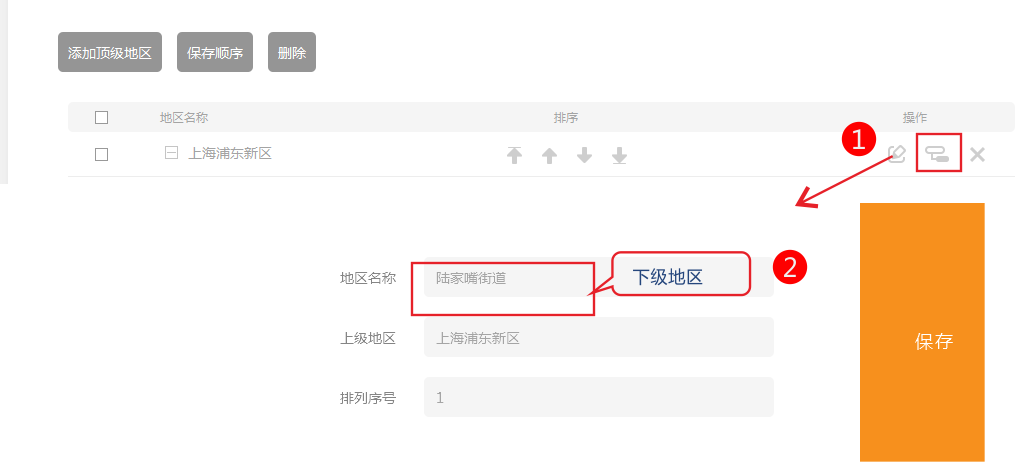 保存后,在列表中點(diǎn)擊添加二級地區(qū)
