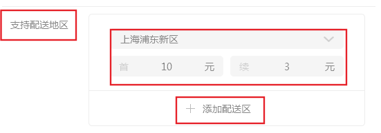 在添加或修改配送方式時,選擇指定地區(qū)及費(fèi)用,使用剛才自定義的地區(qū)