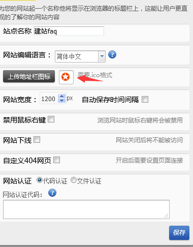 依次點(diǎn)擊 設(shè)置 -》網(wǎng)站設(shè)置-》上傳ico圖標(biāo)即可