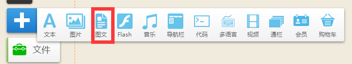 首先,點擊頁面左上角“添加”, 在彈出功能條中選擇“圖文”并拖至頁面中的任意位置: