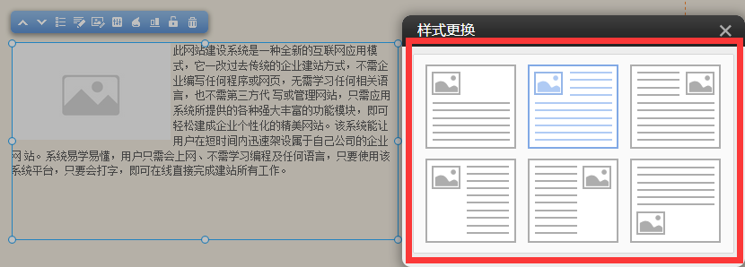 松手,該模塊添加成功,后續(xù)仍可以鼠標(biāo)拖動該模塊進(jìn)行任意移動。松手后,系統(tǒng)會自動彈出“模式更換”選擇您需要的樣式: