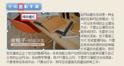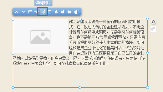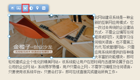 我們?yōu)榻ㄕ臼褂谜咛峁┝艘惶讏D片編輯插件, 在這里您只需要簡單的操作, 即可對自己已經(jīng)上傳并添加至頁面上的圖片進(jìn)行編輯, 而無需使用專業(yè)化的圖片編輯軟件, 鼠標(biāo)選中圖片模塊并點擊模塊上方“圖片編輯”功能按鈕