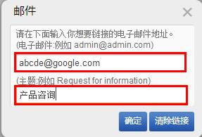 “郵件”:是指可以將圖片鏈接到郵箱上, 當(dāng)點擊該鏈接時,系統(tǒng)會自動調(diào)用本地的郵件發(fā)送程序(如outlook或者foxmail,注意:訪客必須本地有安裝這樣的客戶端方可打開,否則點擊沒有反應(yīng)),發(fā)送email到您設(shè)定的賬戶。如下圖的設(shè)置,當(dāng)點擊圖片的時候,會打開客戶端郵件編輯界面并進(jìn)入編輯一封主題為“產(chǎn)品咨詢”、收件人為abcde@google.com的郵件。