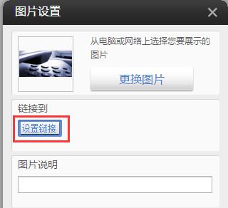 , 系統(tǒng)彈出圖片設(shè)置對話框, 可以點擊設(shè)置鏈接按鈕選擇鏈接到:網(wǎng)址、頁面、郵件、文件等您需要的的地方。
