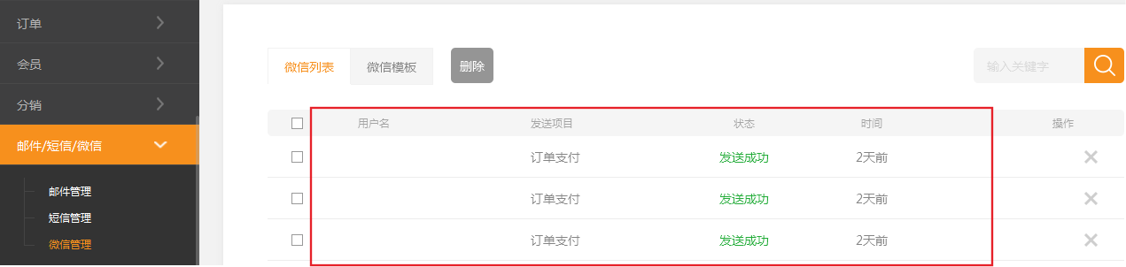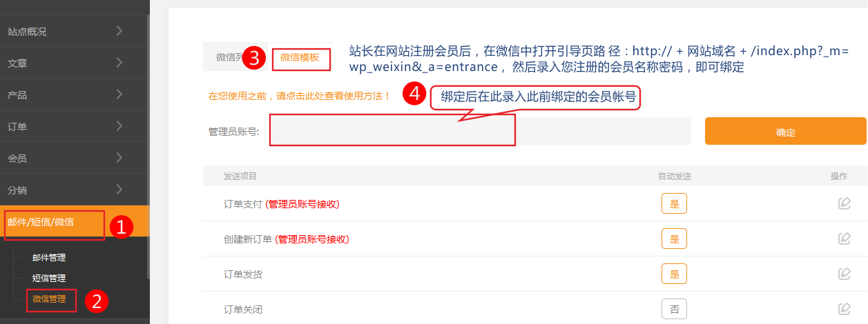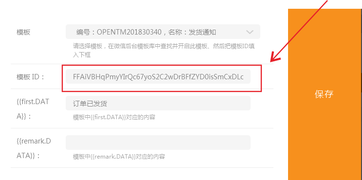 2:在網(wǎng)站后臺(tái)微信模板設(shè)置中編輯、并查看對應(yīng)的模板編號