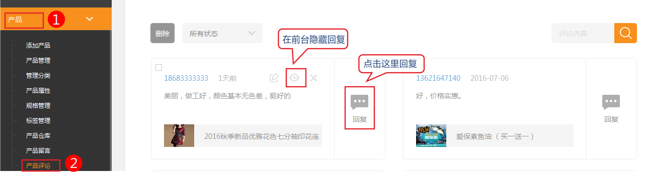 評論內(nèi)容顯示在商品詳細(xì)頁,店主可以決定評論的是否顯示及回復(fù)。ps:為保證信息安全,用戶評論默認(rèn)不展示,需要網(wǎng)站管理員審核后點(diǎn)擊顯示按鈕后前臺才會顯示相應(yīng)評論。