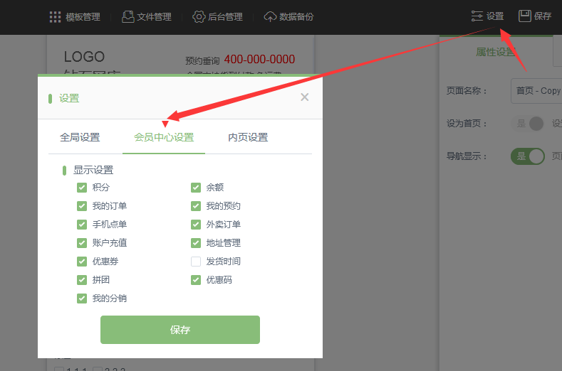 在網(wǎng)站后臺-》設(shè)置-》會員中心設(shè)置不需要顯示的項目(注意設(shè)置后需要重新發(fā)布)