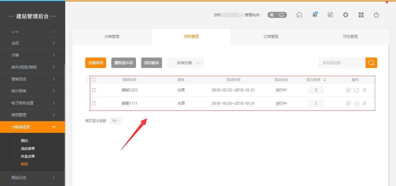 1.點(diǎn)擊建站后臺(tái)“小程序應(yīng)用”-“拼團(tuán)”-“創(chuàng)建拼團(tuán)”,填寫拼團(tuán)的信息。