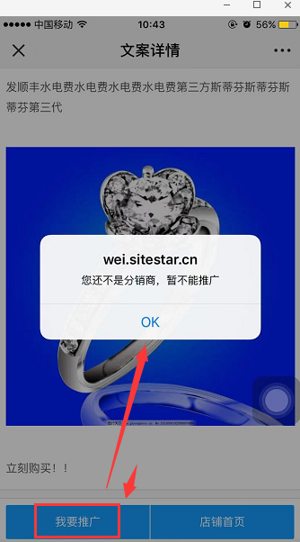 如果還不是分銷商時點擊我要推廣會有以下提示