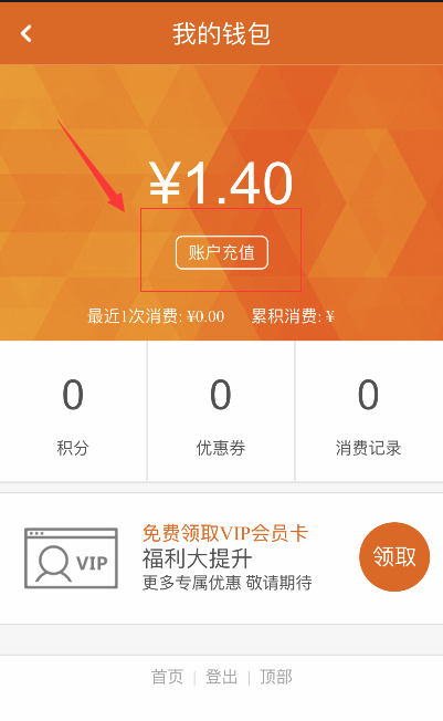 ⑧.同理,手機版同樣可以在會員中心---我的錢包里面,點擊“賬戶充值”進行充值并且查看充值記錄等,如圖