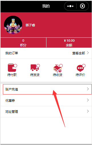 ⑨.在小程序中,點擊“我的”-“會員中心”中會有“賬戶充值”,點擊之后,進入賬戶充值頁面,需要注意的是,小程序使用此功能時,需要從新發(fā)布才可以正常使用