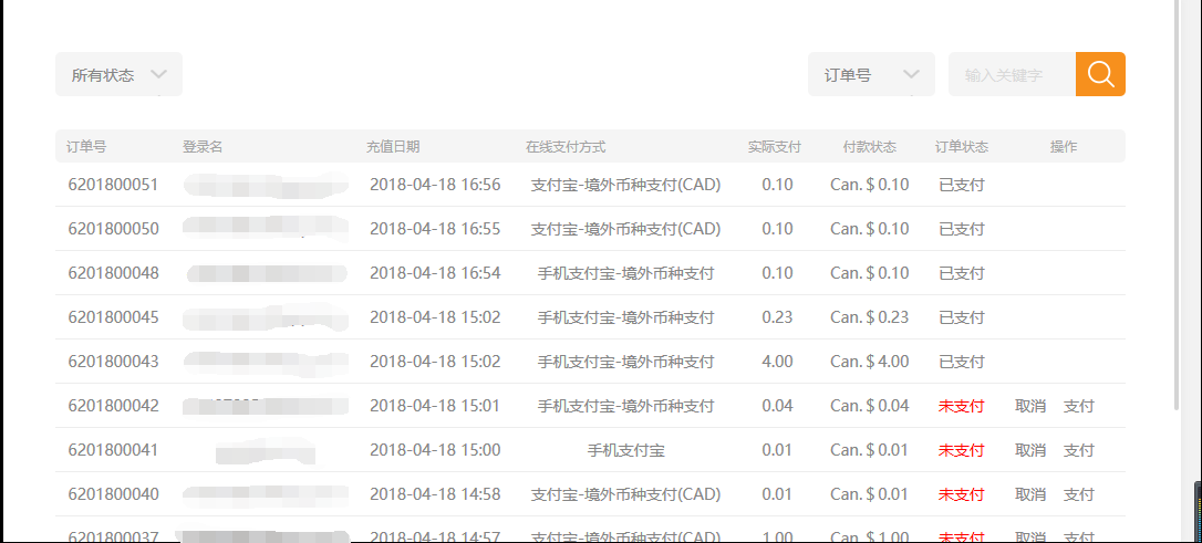 ⑥.后臺---會員---會員交易里,點擊“在線支付查看”,管理員可以查看用戶的在線支付訂單