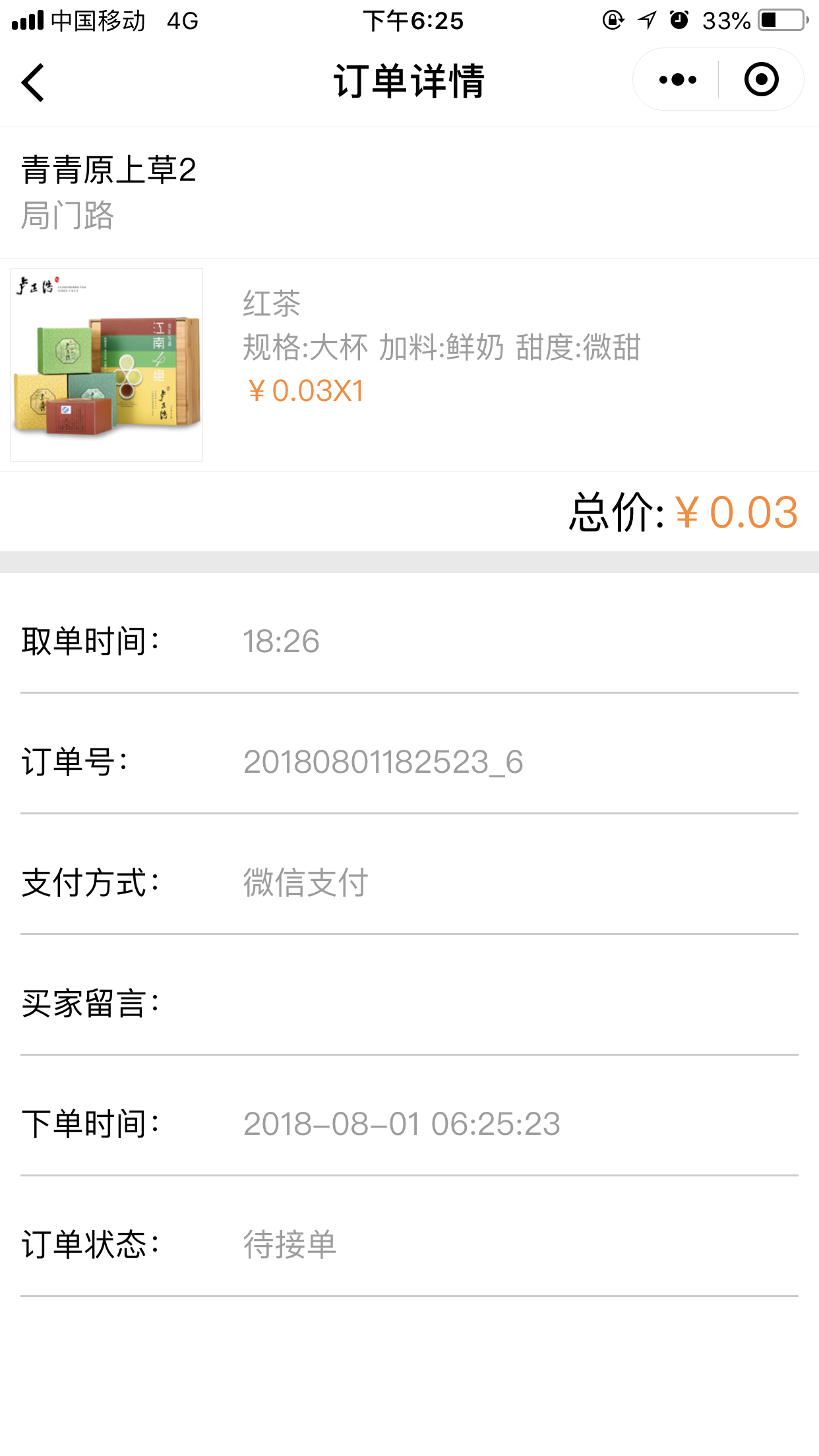 6.在后臺“訂單管理”中,當(dāng)商家已經(jīng)接單后,前臺用戶則不能申請“退款”,如果商家沒有接單,則用戶可以進(jìn)行“申請退款操作”,如圖所示: