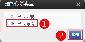 選擇“秒殺詳情”后,系統(tǒng)提示需要與秒殺列表配合使用,點(diǎn)擊“確定”:
