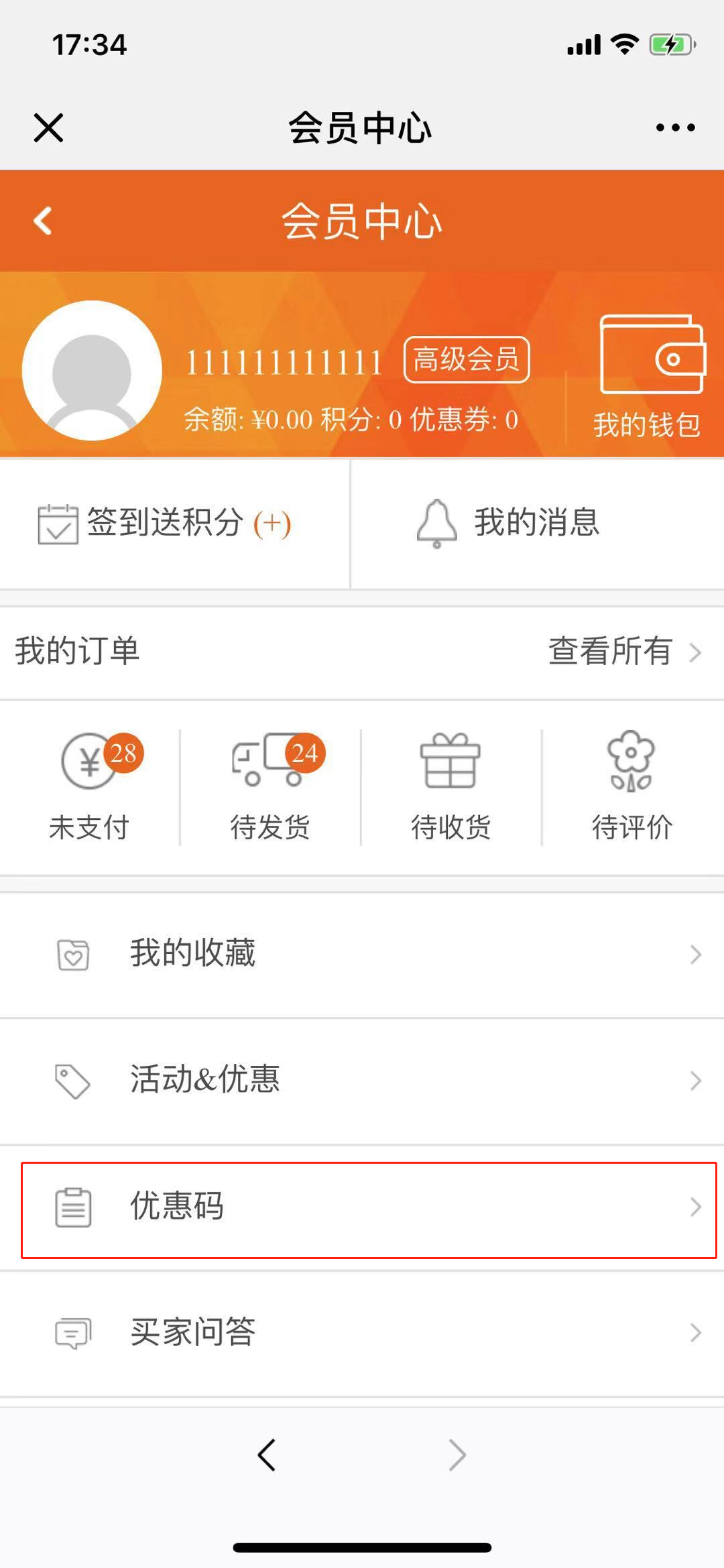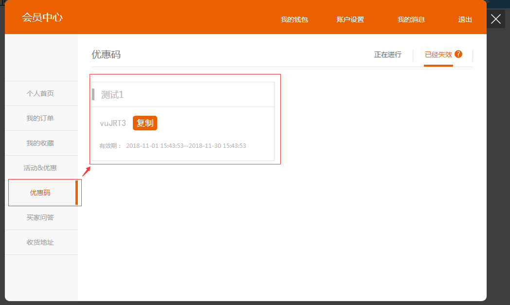 3.Pc端可在個人中心查看優(yōu)惠碼,如圖所示: