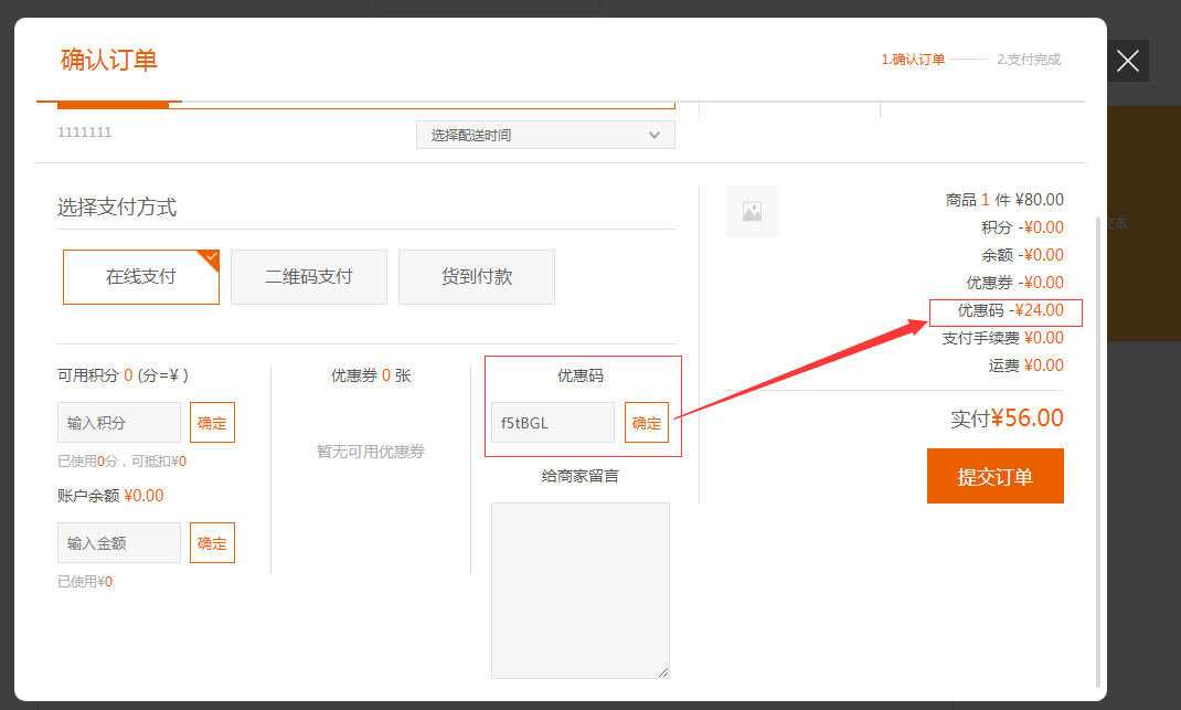 (注意:優(yōu)惠劵和優(yōu)惠碼同時都有時,只能二選一使用其中一個)