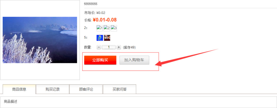 交易設(shè)置幫助文檔"交易開(kāi)關(guān)"是控制前臺(tái)產(chǎn)品詳情頁(yè)面中"加入購(gòu)物車(chē)"和"立刻購(gòu)買(mǎi)"兩個(gè)按鈕是否顯示的操作,當(dāng)選擇"開(kāi)啟"則前臺(tái)頁(yè)面則會(huì)顯示該按鈕,若選擇"關(guān)閉"則會(huì)將按鈕"隱藏"。如圖所示:
