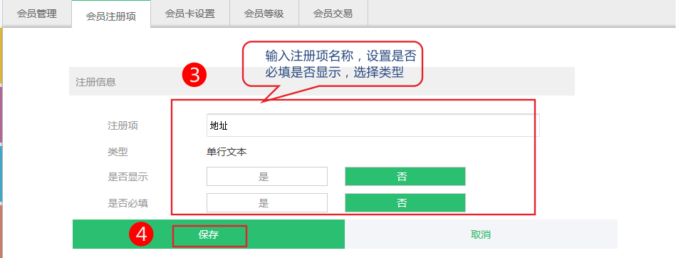 注冊項在會員中心是否顯示可以在會員管理中控制