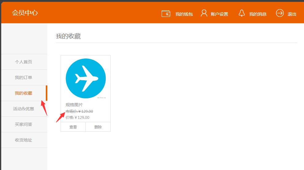 ③.此外,在會員中心可以查看收藏的商品