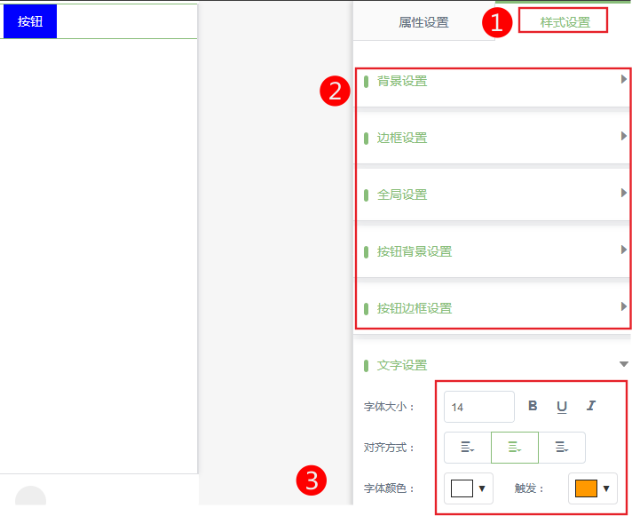 支持客戶自定義按鈕顯示樣式:文字 ,背景,邊框,等設(shè)置